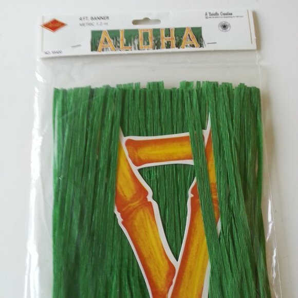NWT - Beistle Aloha Paper Banner Green grass with bamboo style lettering
