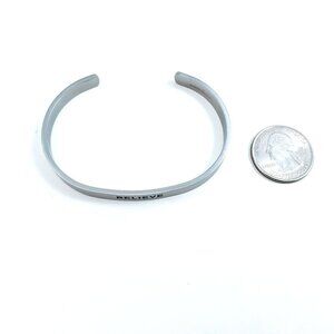Beautiful bracelet in a silver matte tone engraved with the word "Believe".