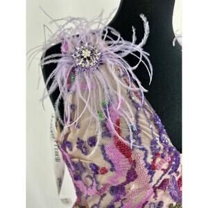 NWT Bella Barnett Loviy Purple Feather Sequin Mini Dress Size XL Cocktail Vegas