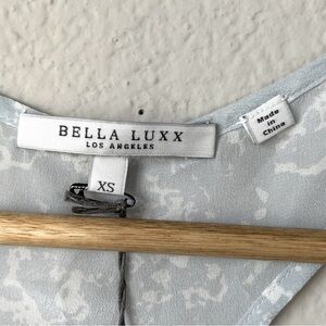 Lightweight silk tank by Bella Luxx. Light blue and white marbled print. Brand new with tags!