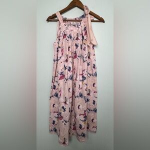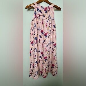 NWT Bellambra 100% Linen A-Line Dress with Bow in Muted Blush Pink Watercolor Floral Print Size Medium