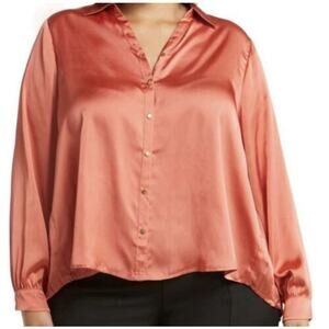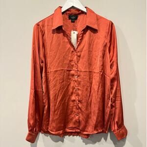 NWT Belldini Size Large Ginger Spice Orange Satin Button Down Blouse Work Office