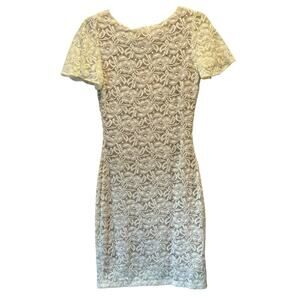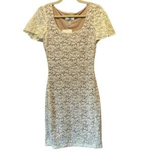 NWT Belle Badgley Mischka Lace Floral Sequin Stretch Mini Dress White Nude