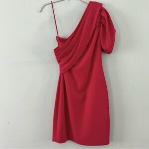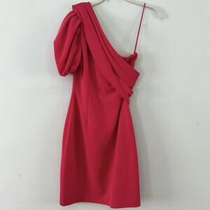 NWT Belle Badgley Mischka Sutton Stretch Crepe One Shoulder Raspberry Pink Dress