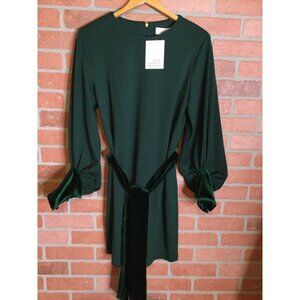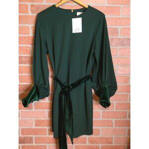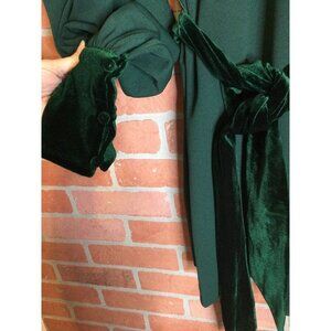 NWT Belle Badgley Mischka Women Velvet Cuffs Belt Dress Stretch Green SZ 4
