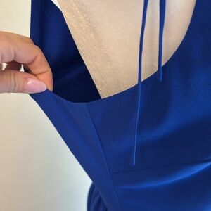 NWT Belle Badgley Mischka Women's Royal Blue Tiered Ruffle Sleeveless Maxi Dress