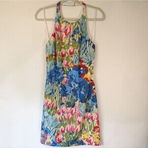 Belle Badgley Mischka Women's Size 12 Royal Multi Halter Dress Floral Print