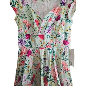 NWT Belle Poque Retro Fit and Flare Pin-up Dress Mint Green Floral