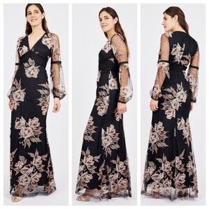 NWT Belle by Badgley Mischka Floral Embroidered Mermaid V-Neck Long Sleeve Gown