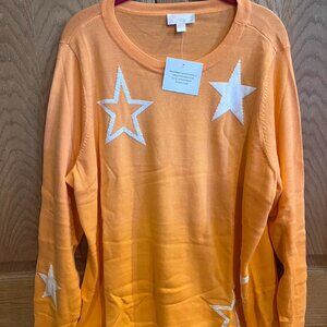 NWT Belle by Kim Gravel Orange and White Star Sweater