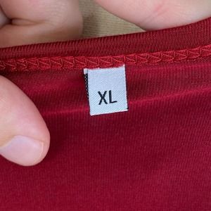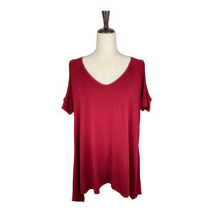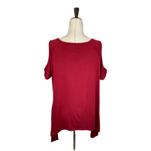 This is a Beluring Women's Red Short Sleeve V-Neck Cold Shoulder Tunic Size XL