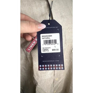 NWT Ben Sherman Men's Beige Linen Blend Short Sleeve Button-Down Shirt Medium