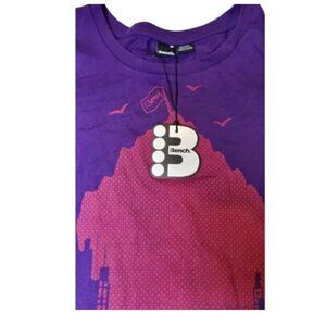 Elevate your casual wardrobe with this NWT Bench Women's Purple Graphic Tee featuring a striking cityscape design in vibrant pink.