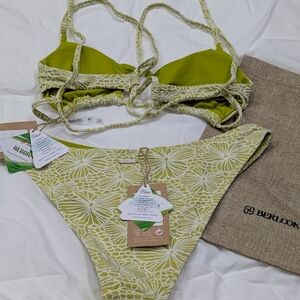 NWT /Berlook / Medium Large / Light Green Floral Jacquard Cut Out Bikini Set