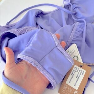 NWT Berlook Purple One Piece Swimsuit with Floral Detailing O Ring Size Medium