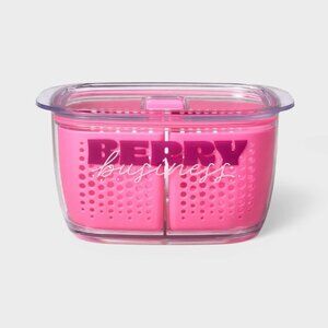 Store your fresh berries with ease in this Berry Produce Keeper from Tabitha Brown for Target. This berry produce keeper features a transparent box with two partitions featuring "Berry Business" text for easy identification. It comes with two pink containers with holes to keep fresh strawberries, blackberries, raspberries and more. Plus, this 31-ounce berry keeper also has a lid with a slide closure to help prevent moisture loss.