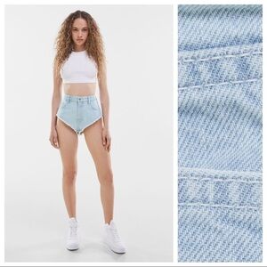 🌹 NWT. Bershka Light Blue High Waisted Five Pocket 80's Denim Shorts. Size 8.