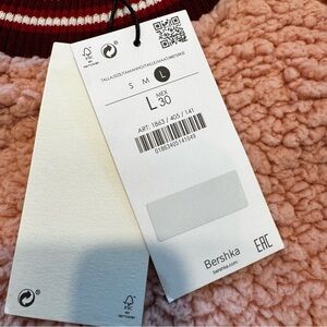 NWT Bershka Pink Striped Contrast Hem Fuzzy Cozy Sherpa Fleece Pullover Sz L