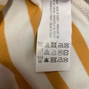 NWT. Bershka White/Mustard Short Halter Neck Jumpsuit with decorative tie on the front, back button closure. Size S. B 1611. B 1612.
