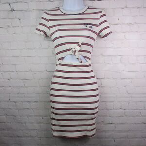 NWT Bershka Size XS Striped Graphic Patch Cutout Dress
