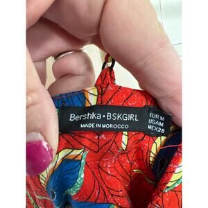 New with tags Bershka size medium women’s romper. Adjustable straps. Zips in the back. Measures 16” from armpit to armpit. 14 2/2” across the waist. Inseam is 2” and total length is 32” give or take a little depending on how straps are adjusted.