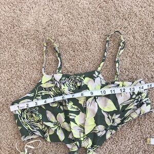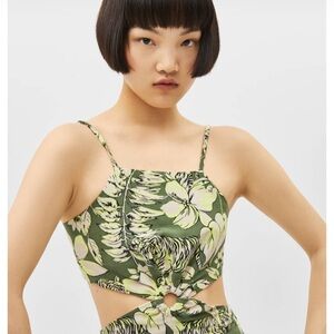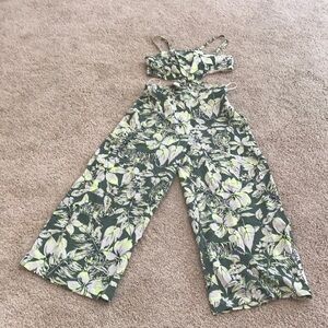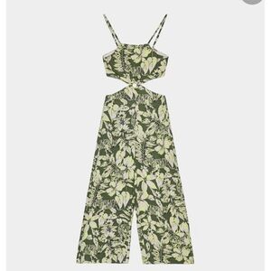 Bershka small tropical print jumpsuit , elasticized back with adjustable straps , open at back , side zipper . Gorgeous