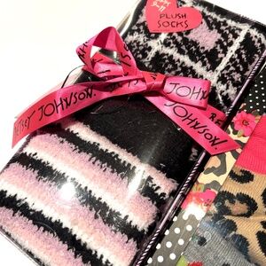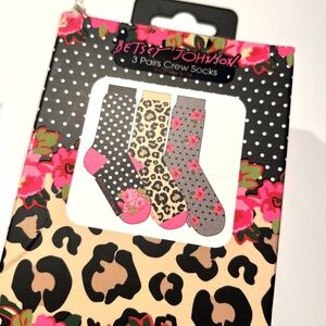NWT Betsey Johnson 2 Box Sets (6 Pairs) Gift Socks Plush Crew Leopard Striped