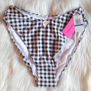NWT Betsey Johnson Bikini Bottoms Size XL High Leg Cut Black White Gingham Print