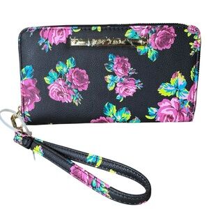NWT Betsey Johnson Black Floral Zip Wristlet Wallet Size OS
