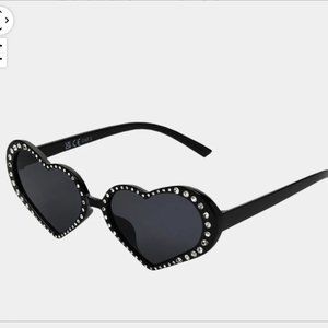 NWT Betsey Johnson Black Rhinestone Studded Heart Sunglasses