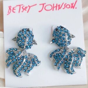 NWT Betsey Johnson Blue Crystal Fish Earrings.