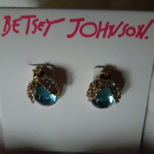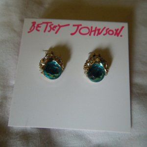 NWT Betsey Johnson Blue Glass Bug Stud Earrings