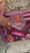 Charming pink card holder with candy designs. Features zipper and card slots.