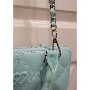 Stay organized and stylish with this new Betsey Johnson crossbody purse wallet in a fresh mint green. Designed with multiple credit card slots, a zipper pocket, and a spacious interior, it’s perfect for hands-free convenience. The quilted pattern and chain-accented strap add a chic touch to your everyday look.