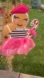 Charming gingerbread design. Pink tutu and beret. Brown body with striped details. Candy cane accent.