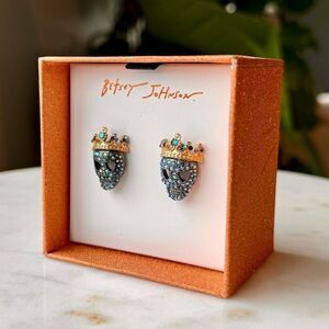 NWT Betsey Johnson Gold Crown Skull Earrings