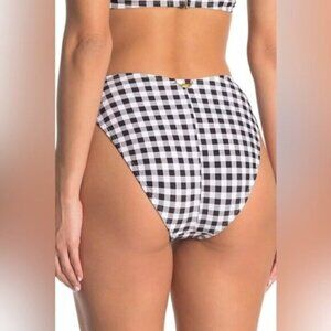 NEW Betsey Johnson Black White Gingham Pic Artist High Cut Bikini Bottoms