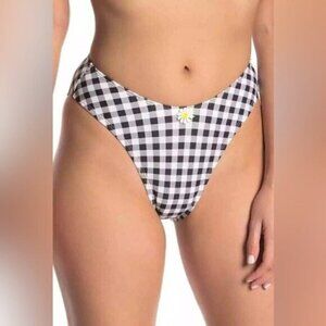 NWT Betsey Johnson High Cut Bikini Bottoms Size Large Black White Gingham Print
