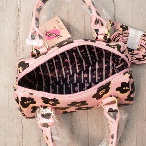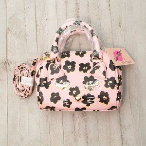 NWT Betsey Johnson Kitty Cat Mini Barrel Satchel in Black and Pink