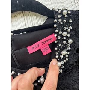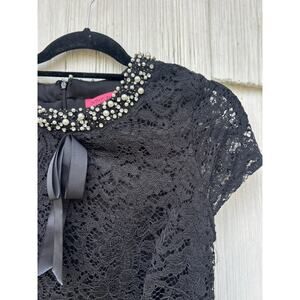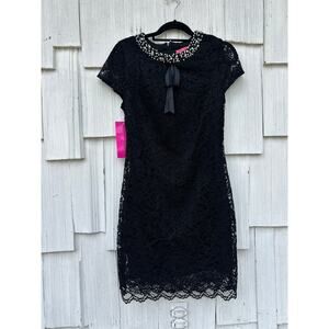 NWT Betsey Johnson Lace Shift Dress Beaded Collar Bow Detail Cap Sleeve Sz 8