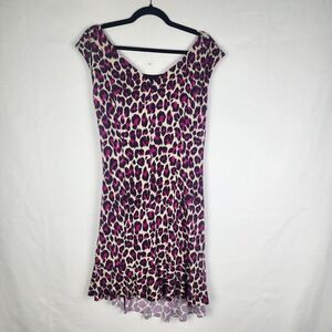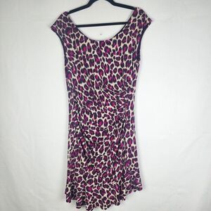 NWT Betsey Johnson Leopard Print Dress Size 14 Purple Sleeveless Ruched Zip