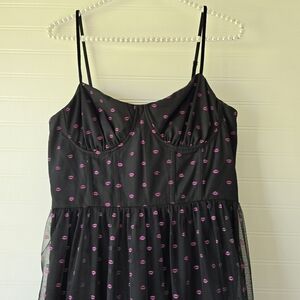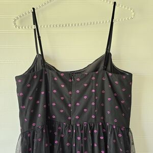 NWT Betsey Johnson Lip Print Tiered Midi Sun Dress Raven Black 8 Sundress