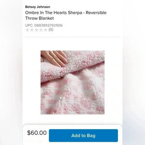 Viral Betsey Johnson Ombre In The Hearts Sherpa - Reversible Throw Blanket 50X60 NWT