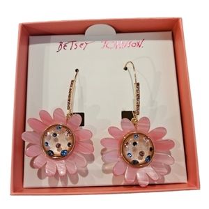 NWT Betsey Johnson Pink Glitter Daisy Earrings Y2K Dangly Rhinestone Lucite