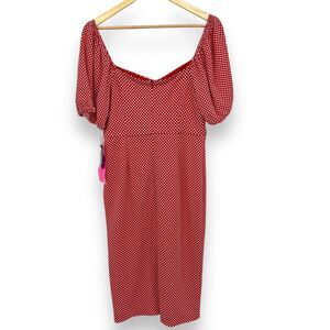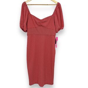 NWT Betsey Johnson Red Dot Puff Sleeve Midi Dress Womens Sz 8