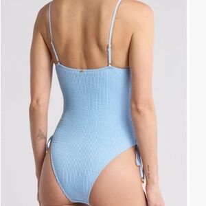 NWT Betsey Johnson Sky Blue V-Neck One-Piece Swimsuit