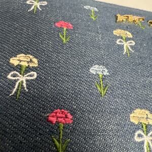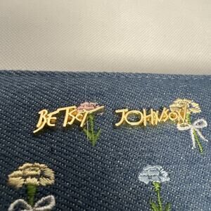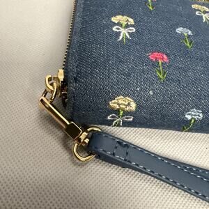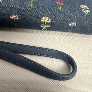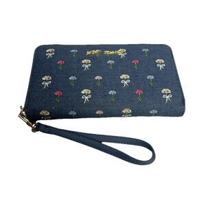 NWT Betsey Johnson Zip Around Wallet Wristlet Blue Denim W Embroidered Flowers