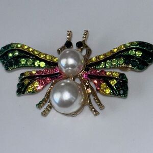 NWT Betsey Johnson butterfly rainbow crystal pin/brooch pearl