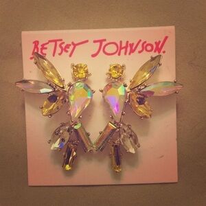 Beautiful Betsey Johnson earrings with yellow and iridescent stones that match the yellow canary bracelet in my closet