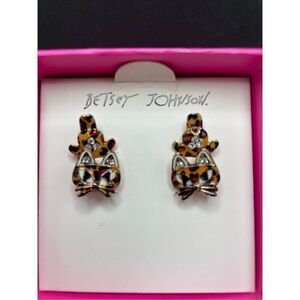 New Betsey Johnson Leopard "Mini Critters" Drop Dangle Cat Earrings in Gift Box